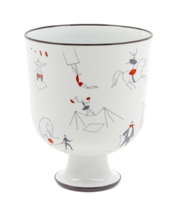 of chalice form decorated with acrobats and circus entertainers.