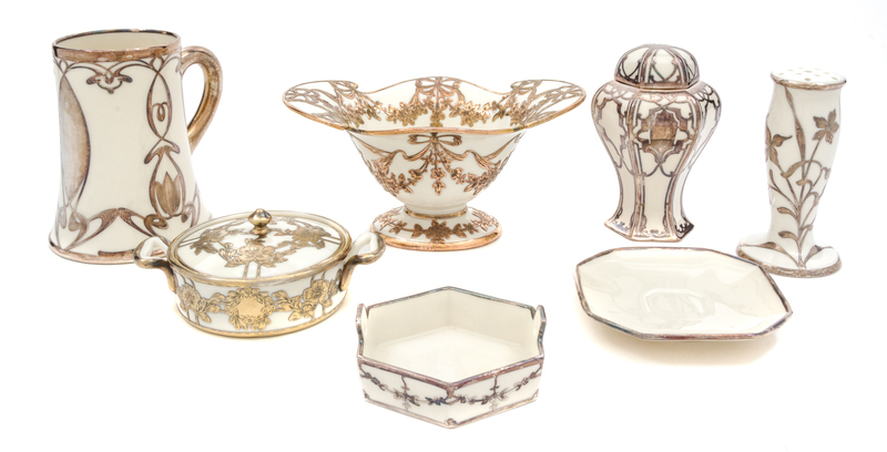 A Group of Lenox Porcelain Silver Overlay Table Articles