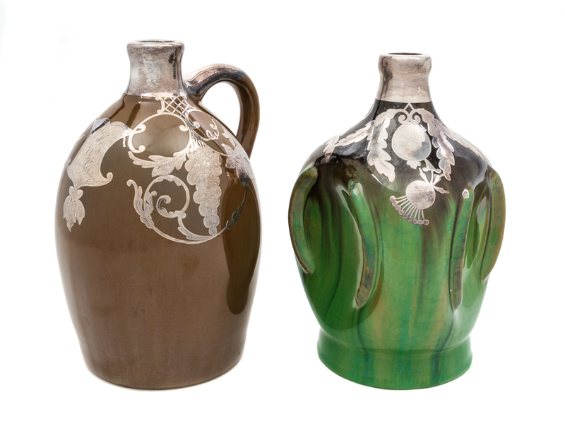 Two Musical Ceramic Silver Overlay Jugs