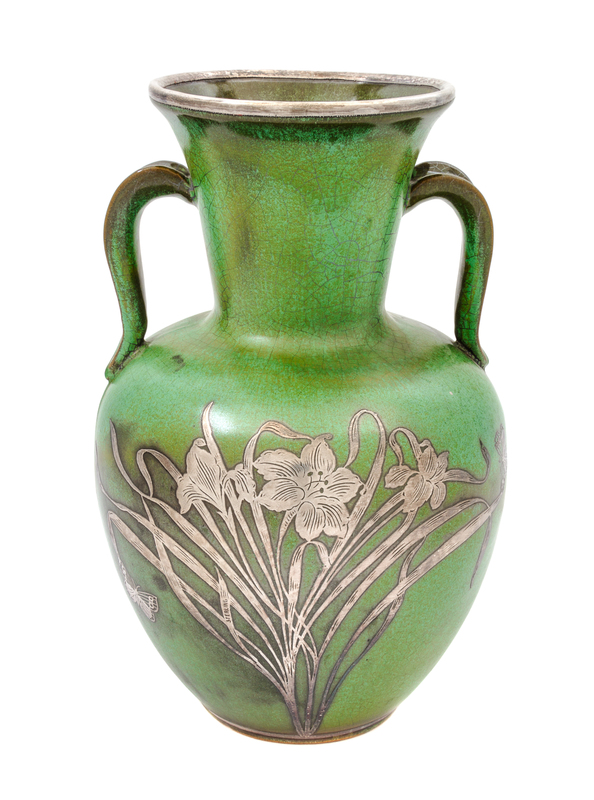 A Frankoma Pottery Silver Overlay Vase