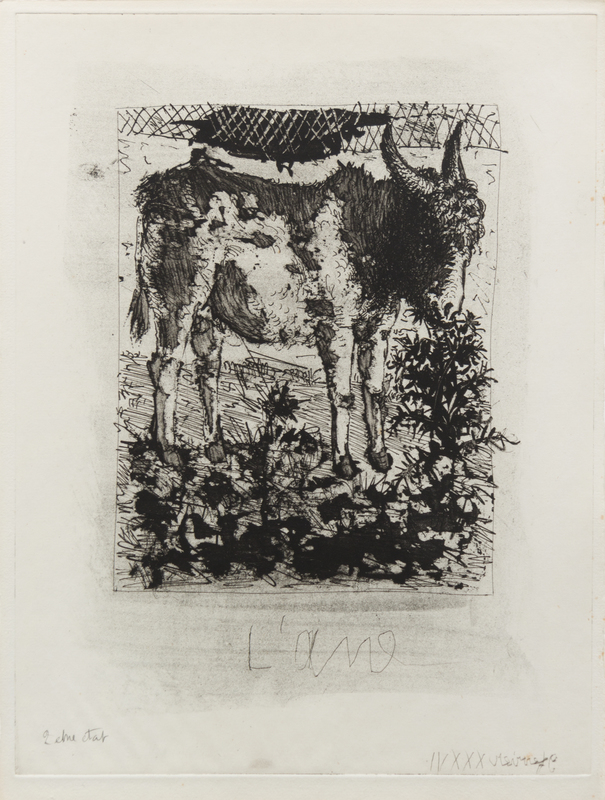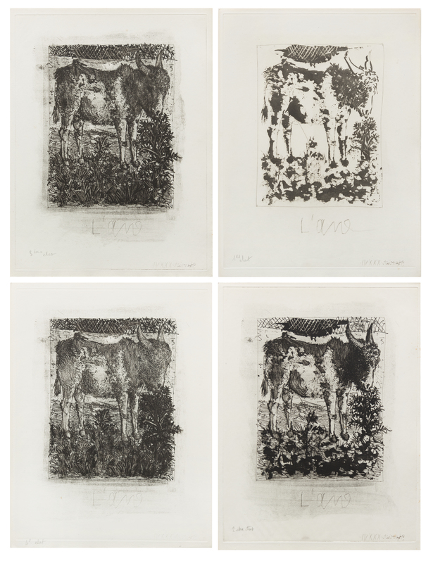 L'ane (from Buffon's l'Histoire Naturelle), 1942 (a collection of 4 works comprising of states I, II, III, and IV on Montval paper before steelfacing)