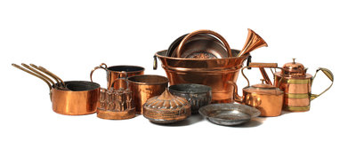 comprising two circular colanders, three food molds, an oval planter, four graduated sauce pans, two oversized cups and two kettles.