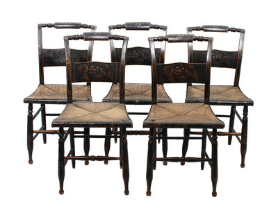 A Set of Eight Lacquered and Gilt Decorated Hitchcock Side Chairs