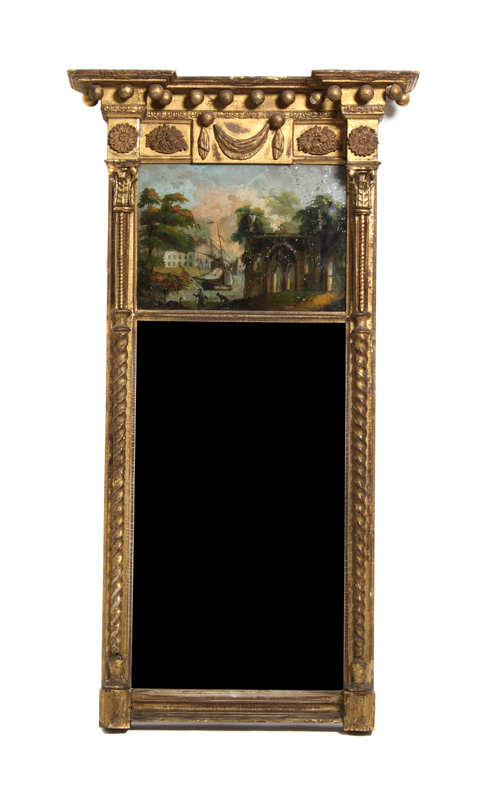 A Regency Gilt and Reverse Painted Glass Mirror