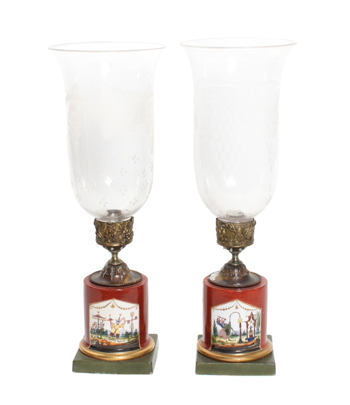 A Pair of Chinese Export Porcelain Hurricane Candle Sticks