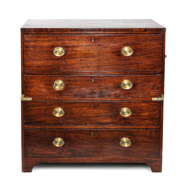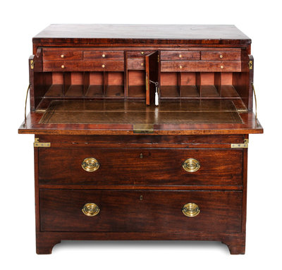 A Campaign Style Mahogany Secretaire Chest of Drawers