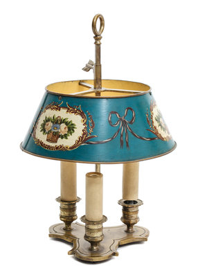 with three candle arms and tole shade.