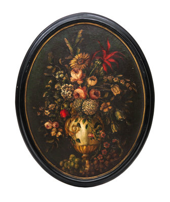 Neoclassical Style Oval Floral Still Life
