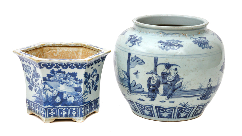 Two Blue and White Porcelain Jardiniere