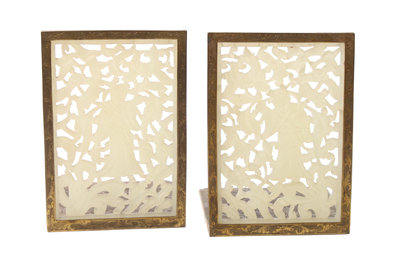 A Pair of Chinese Gilt Bronze Mounted Pierce Carved Jade Bookends