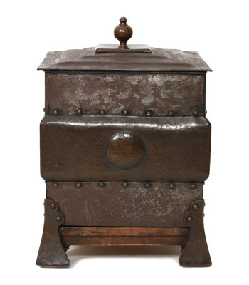 with rectangular section raised on curved feet, with raised embossed decoration.