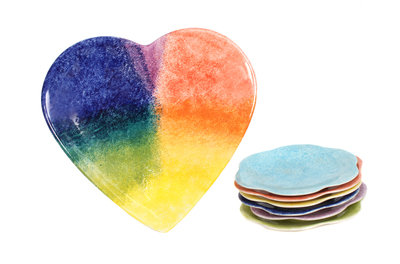 comprising a large dish in the form of a heart and six individual plates.