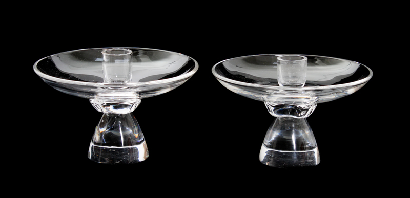 comprising a vase and two candlesticks, each signed Steuben.