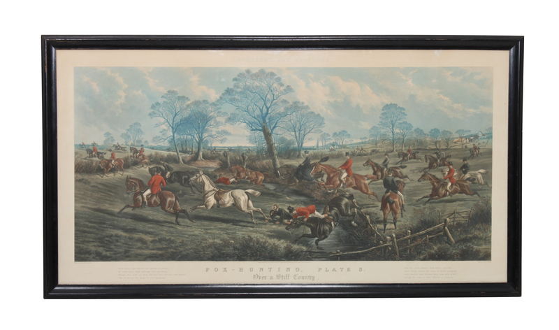 Fox Hunting: Over a Stiff Country, Plate 3, engraving with hand coloring by W. Summers, framed.