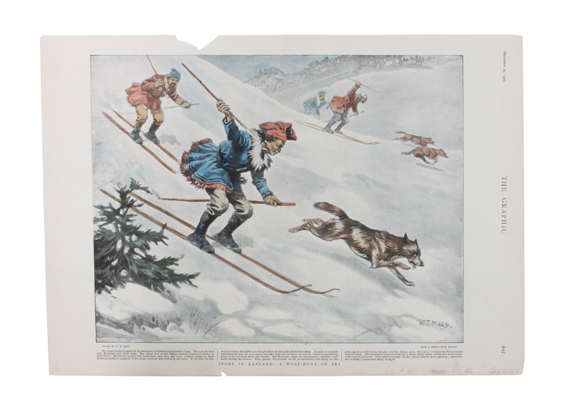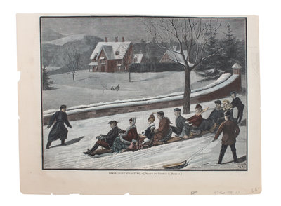 Five Hand Colored Winter Sports Prints