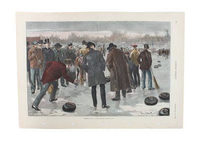 featuring scenes of curling, tobogganing, ice skating and downhill skiing, in various sizes each unframed.
