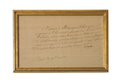 comprising a letter and a book plate engraving of Lafayette, each framed.
