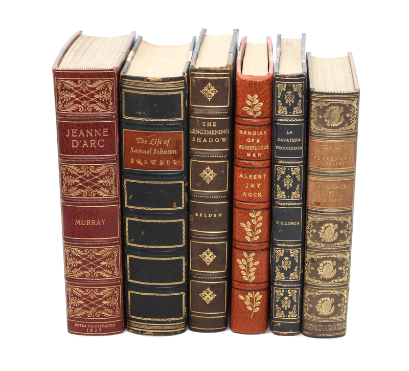 six books including Murray, T. Douglas JEANNE D'ARC MAID OF ORLEANS DELIVERER OF FRANCE, London: William Heinemann, 1907; THE LIFE OF SAMUEL JOHNSON, L.L.D. New York: Random House; Beldon, Thomas Graham and Marva Robins THE LIGHTENING SHADOW, THE LIFE OF THOMAS J. WATSON Boston: Little, Brown and Company, First edition; Nock, Albert J. MEMOIRS OF A SUPERFLULOUS MAN New York and London: Haper & Brothers, Third edition; Helman, Edith F. FREDERICO GARCIA LORCA LA ZAPHATERA PRODIGIOSA New York: W.W. Norton & Company Inc., 1952, First edition; and THE LIFE OF BENVENUTO CELLINI London: J.M. Dent & Sons Limited, 1926.