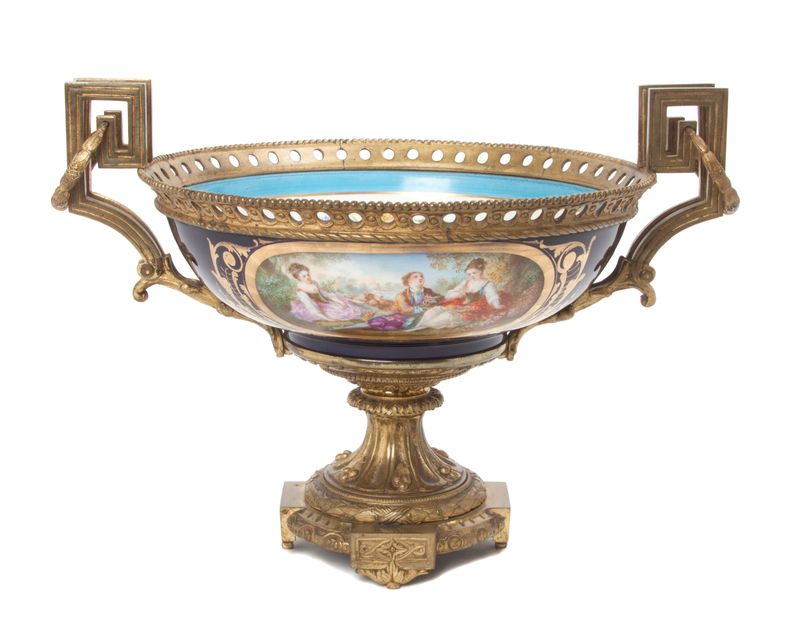 A Sevres Style Gilt Bronze Mounted Porcelain Center Bowl