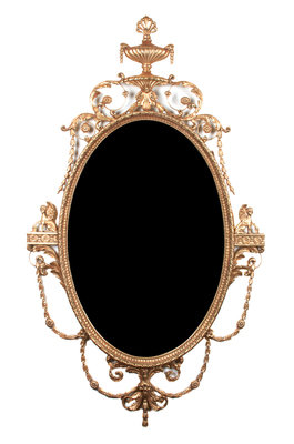 A Pair of Italian Gilt Gesso Oval Mantel Mirrors