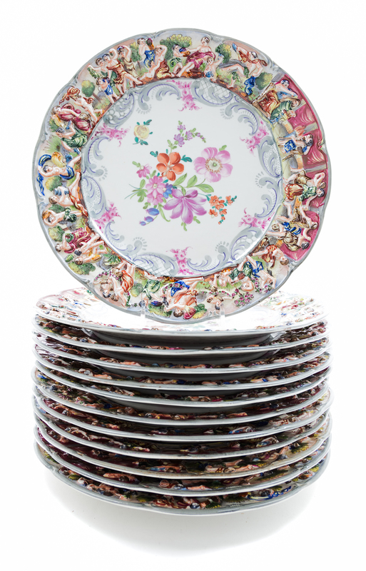 A Set of Twelve Capo-di-Monte Porcelain Plates