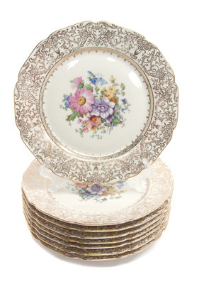 A Set of Eight Bohemia Royal Ivory Porcelain Dinner Plates
