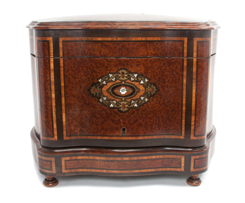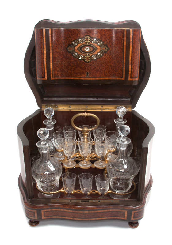 A Continental Burlwood and Brass Inset Cave A Liqueur
