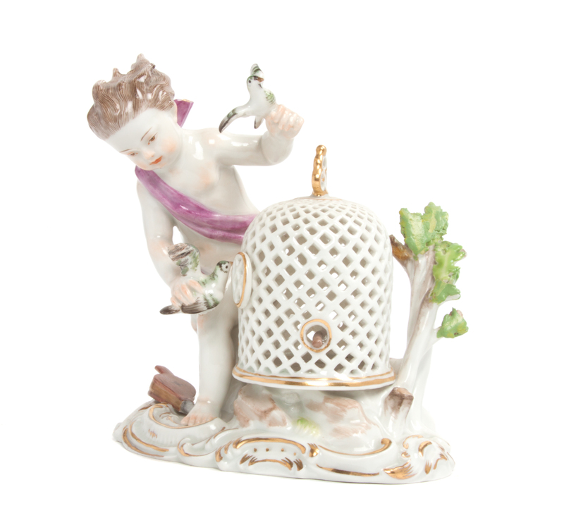 depicting a putto with birdcage.