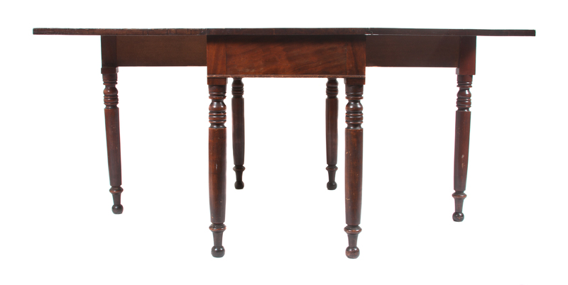 the rectangular top having two leaves over a plain frieze raised on turned legs.