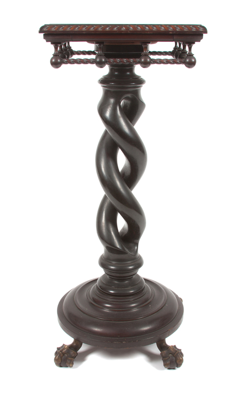 having a square top raised on twisted support with claw and ball feet.