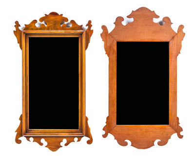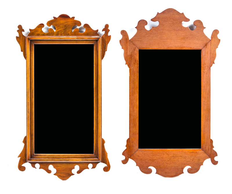 each having a rectangular mirror plate within a conforming foliate scroll decorated frame.