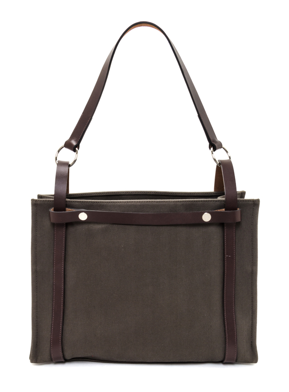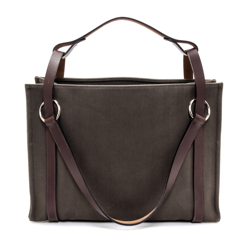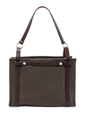 An Hermes Vert de Gris Canvas and Ebene Vache Cabalicol Tote,