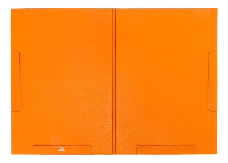 2009, with four small interior flaps to secure a legal sized notebook. Square M blindstamp. Stamped: Hermes.