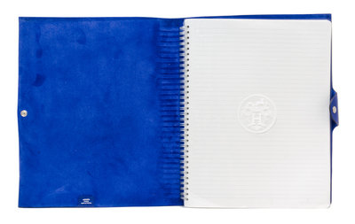 2011, with a leather tab with silver and palladium snap closure and a spiral notebook insert with lined paper. Square O and star blindstamp. Stamped: Hermes.