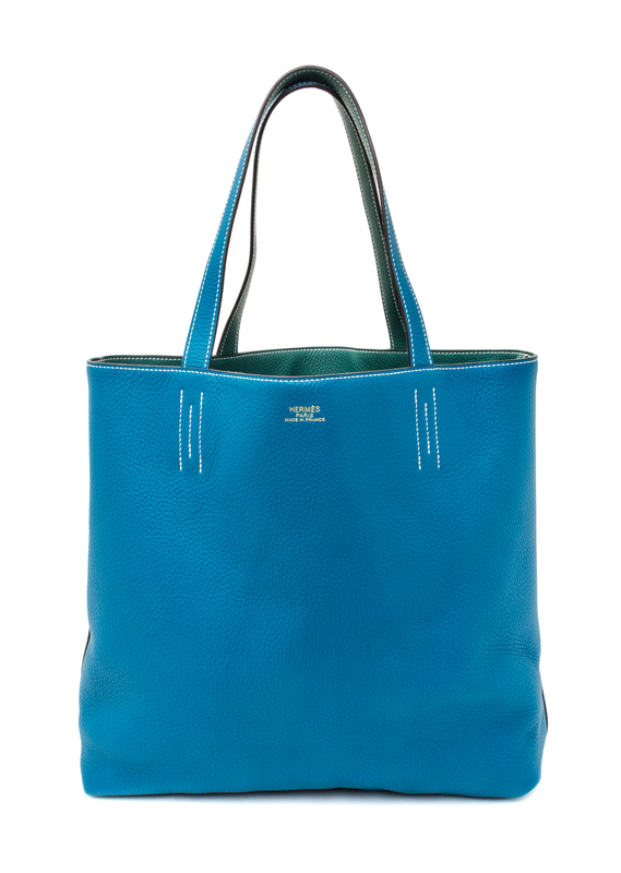 An Hermes Malachite/Bleu Izmir 45cm Taurillon Clemence Double Sens Tote,