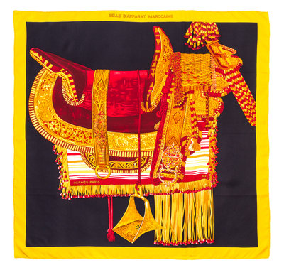 "Selle D'Apparat Marocaine" pattern, designed by Wlodek Kaminski. Together with a box.Labeled within the print: Hermes.