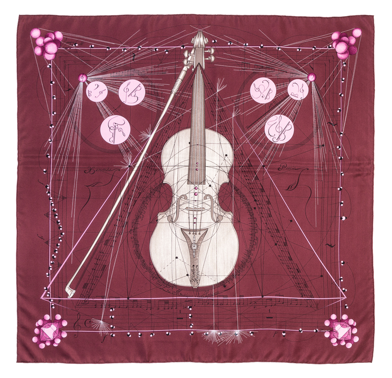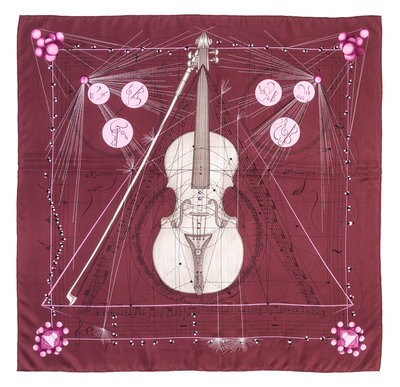 " La Musique des Spheres" pattern, designed by Zoe Pauwels. Together with a box.Labeled within the print: Hermes.