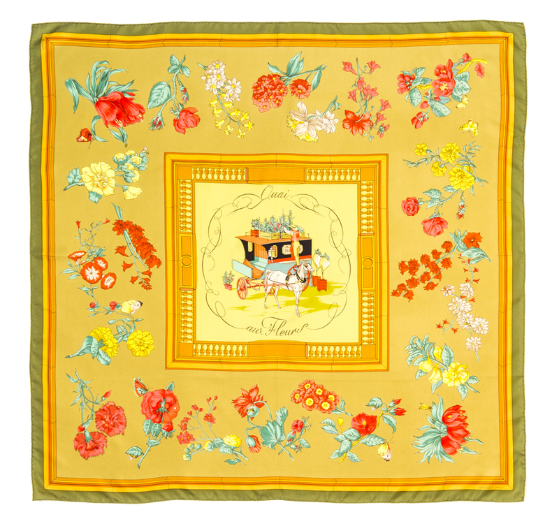 "Quai eux Fleur" pattern, designed by Hugo Grygkar. Together with a box.Labeled within the print: Hermes.