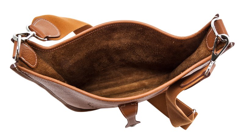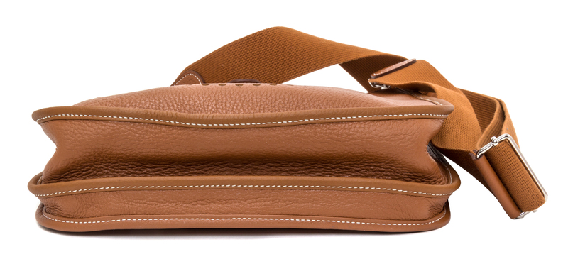 2010, with silver and palladium hardware, unlined, an outside slip pocket, a leather tab closure, a perforated leather H plaque and an adjustable canvas and leather strap. Square N blindstamp.Stamped: Hermes.
