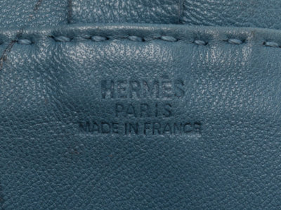 An Hermes Bleu Lin Agneau Clou de Selle Pouch,