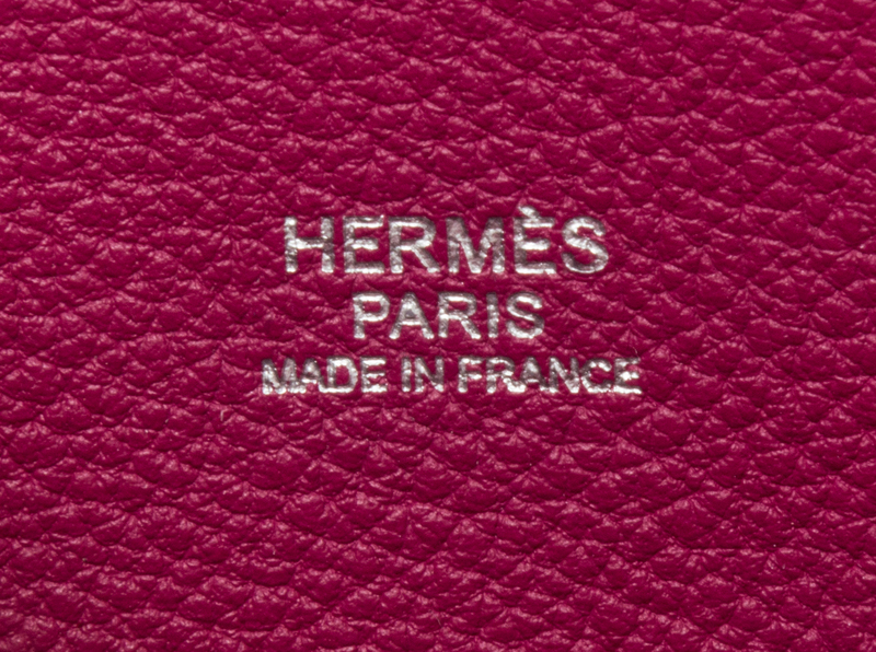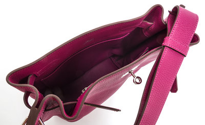 with palladium hardware, an adjustable shoulder strap, a front flap turn lock closure, one interior slip pocket and one interior zip pocket. Together with a dustbag and box. Square blindstamp. Stamped: Hermes.