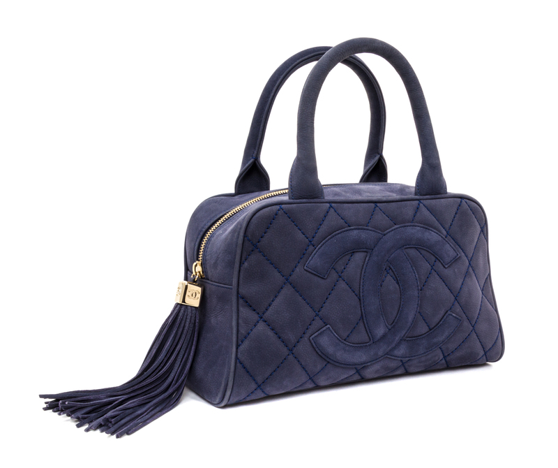 2004-2005,with double rolled handles, goldtone hardware, a top zip closure with decorative fringe tassel, an exterior back slip pocket and an interior zip pocket. Together with an authentication card.Stamped: Chanel.
