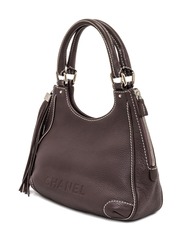2003-2004,with silvertone hardware, decorative side zippers, one zipper with an embellished tassel pull, double rolled handles, a magnetic top snap closure and an interior zip pocket. Together with an authentication card.Stamped: Chanel.