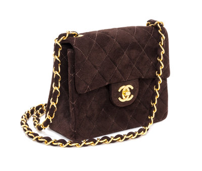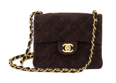 A Chanel Brown Suede Quilted Mini Flap Bag,