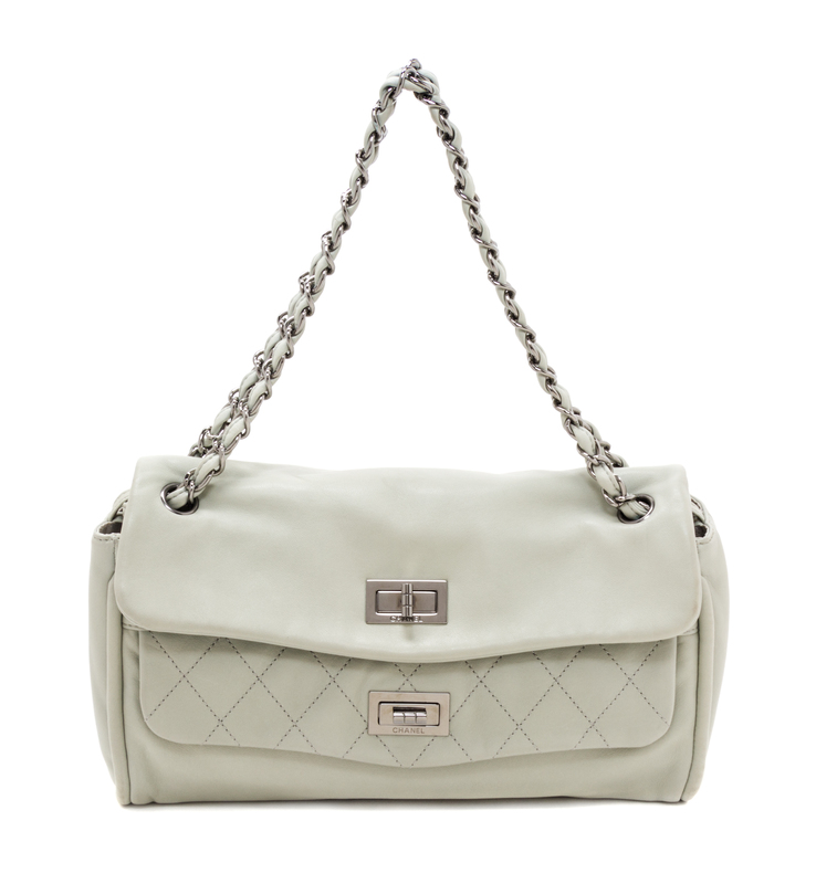 A Chanel Celadon Calfskin Leather Double Flap Handbag,