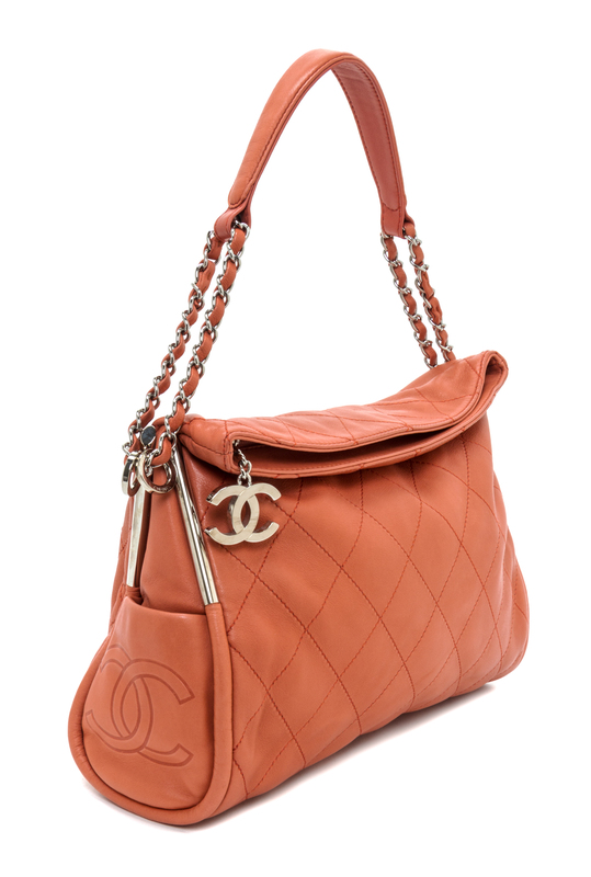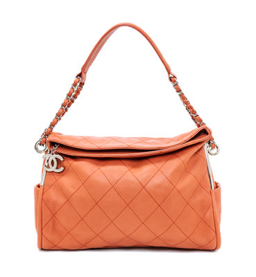 A Chanel Coral Calfskin Leather Quilted Fold Over Handbag,