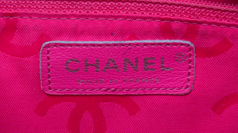 2003-2004,with dual rolled shoulder straps, a black tonal CC logo, an exterior back slip pocket and a fuschia fabric interior with a zip pocket.Stamped: Chanel.