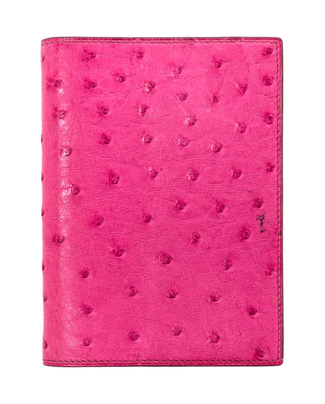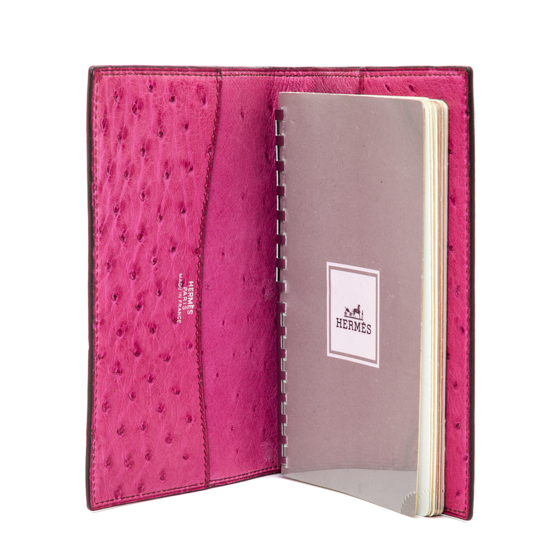 An Hermes Fuschia Ostrich Leather GM Agenda,
