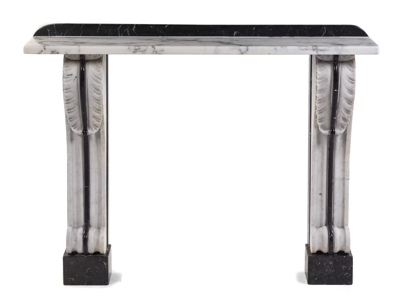 having a rectangular top with rounded corners raised on twin acanthus carved and channeled corbels.