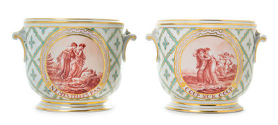 A Pair of Russian Porcelain Twin-Handled Cache Pots